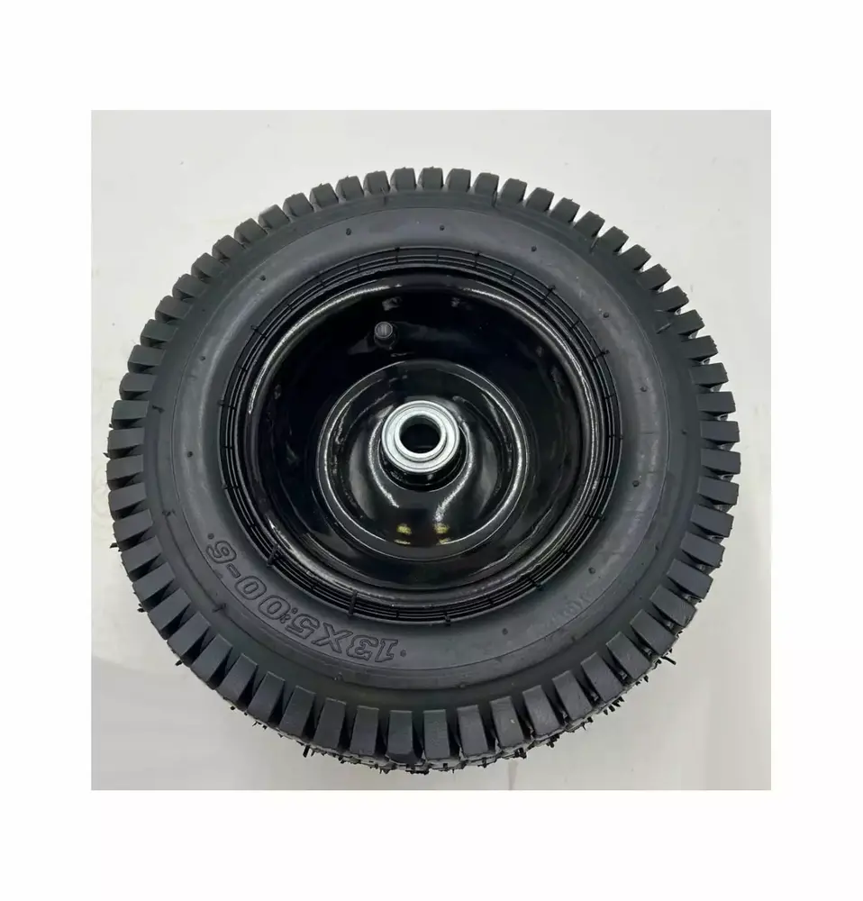 - Pneumatic tire mounted on black rim.