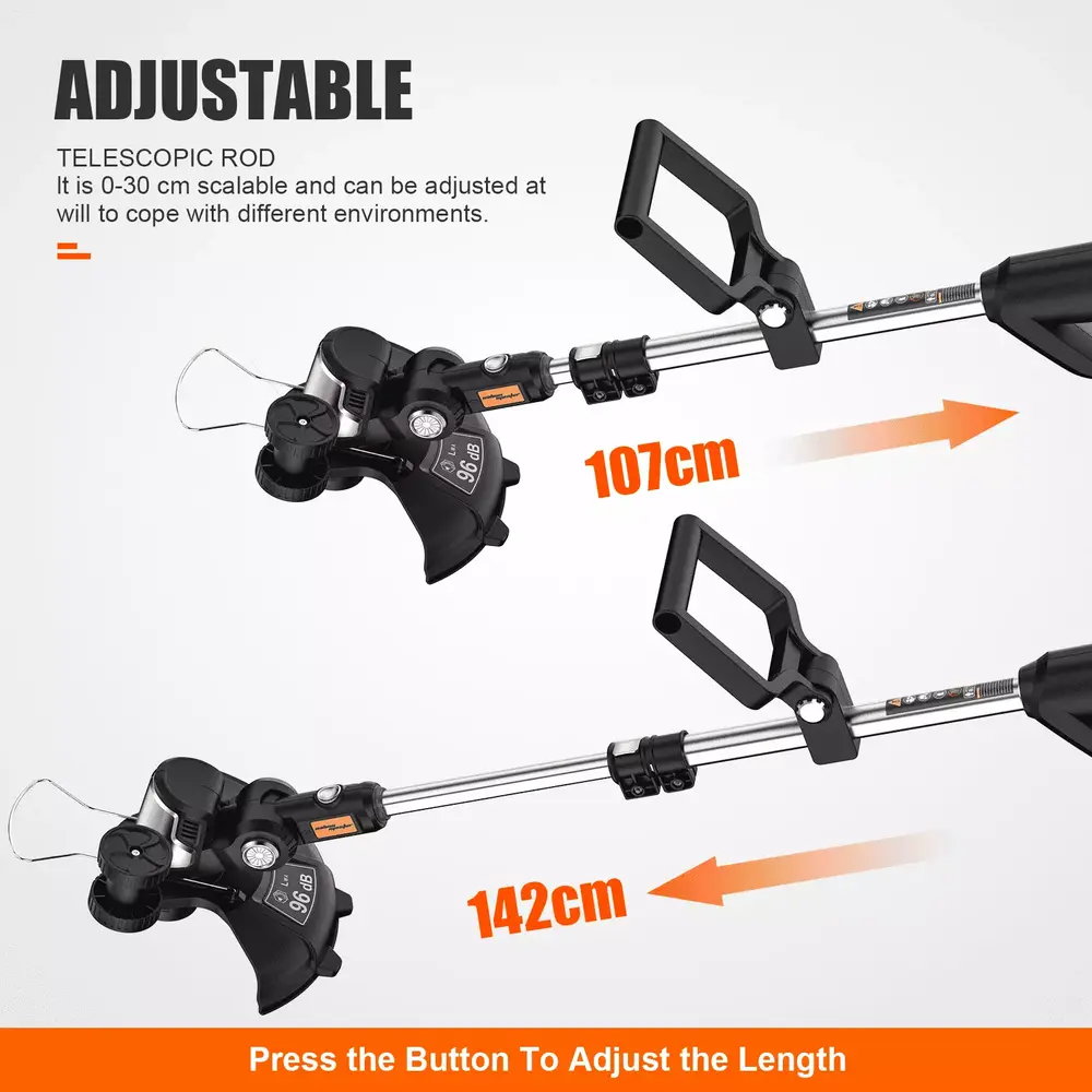 The SALEM MASTER 20V 12-inch Cordless Electric String Trimmer gives you the cordless convenience you want with the gas-like power you need. This weed easter is equipped with an auto feed head and requires very little maintenance. as there is not a need for oil. air filters or gas. The SALEM MASTER cordless string trimmer is only about 6 lbs. runs on a battery and can start with the push of a button. It builds with high performance copper motor which has 18000 rpm engine speed. while it is battery powered. the string trimmer still delivers gas-like performance. The battery is fast charging within 90mins to reach a full charge and allows to use around 30mins(4.0Ah can up to 60 mins). With a 12-inch cutting width. the lightweight cordless elctric string trimmer will be able to used as push lawn mower. trimmer and edger by installing different accessories. cut around flower beds and edges. It has a telescoping shaft that can adjust to various heights and head positions. as well. We provide 2.0Ah and 4.0Ah models to meet your different outdoor power jobs need. Backed by an 1-year warranty with FREE lifetime technical support from dedicated experts.