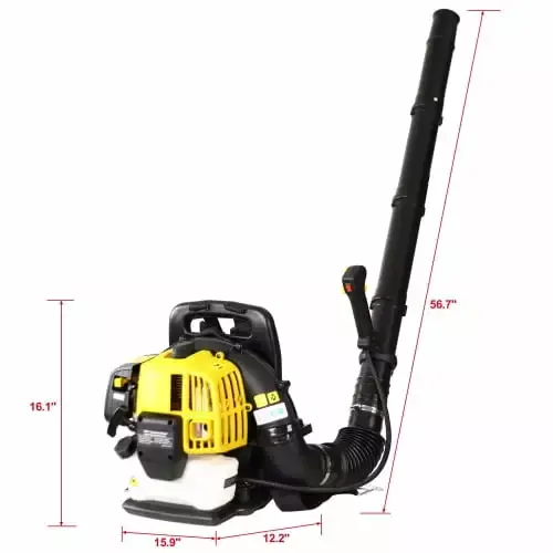 The backpack leaf blower is designed with a padded back. adjustable shoulder straps. and a hip belt to reduce fatigue and strain on your body. With a powerful 52cc 2-stroke engine that produces powerful 248 MPH airspeeds and a max air volume of 530 CFM. It’s a wonderful lawn care tool for large-area leaves. dust or snow cleaning. loose stone cleaning. giving your garden. lawn. or your personality surroundings cleanly.